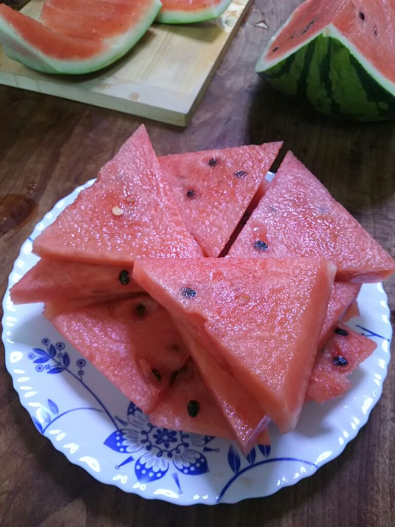 皮も薄く実がぎっしりと詰まり切っても切ってもお皿の上がスイカのケーキ状態で皮の近くまで甘くて美味しくいただきました。